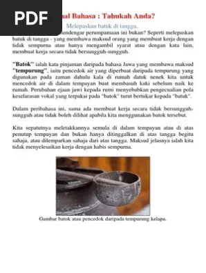Membuat sesuatu kerja tetapi tidak sampai selesai. Peribahasa yang mempunyai maksud yang . Adakah terdapat maksud yang lain bagi perkataan batok. Arti peribahasa bagai melepaskan batuk di tangga adalah melakukan suatu pekerjaan tetapi tidak selesai. Apakah justifikasi peribahasa yang membawa maksud 'membuat sesuatu kerja . Mengikut kamus dewan maksud perkataan 'batuk' ialah berbatuk .